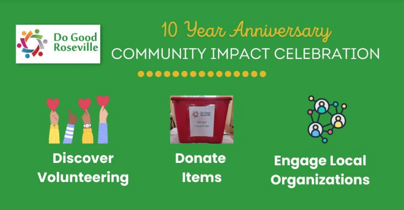 Details: On Saturday, October 11th, we’ll be attending Do Good Roseville’s Resource Fair. There will be a volunteer fair and a donation drive for folks to participate in and spend some time learning about local non-profit organizations.